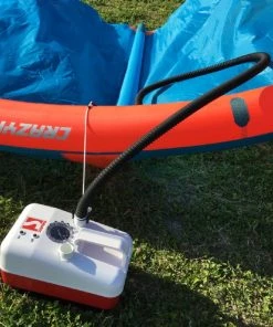 - Heavy duty hose with several types of adapters: H3 SUP (Stand Up Paddleboard Halkey Roberts), SUP ring with 7 assorted adapter sizes, 9mm kite, and Boston screw valve